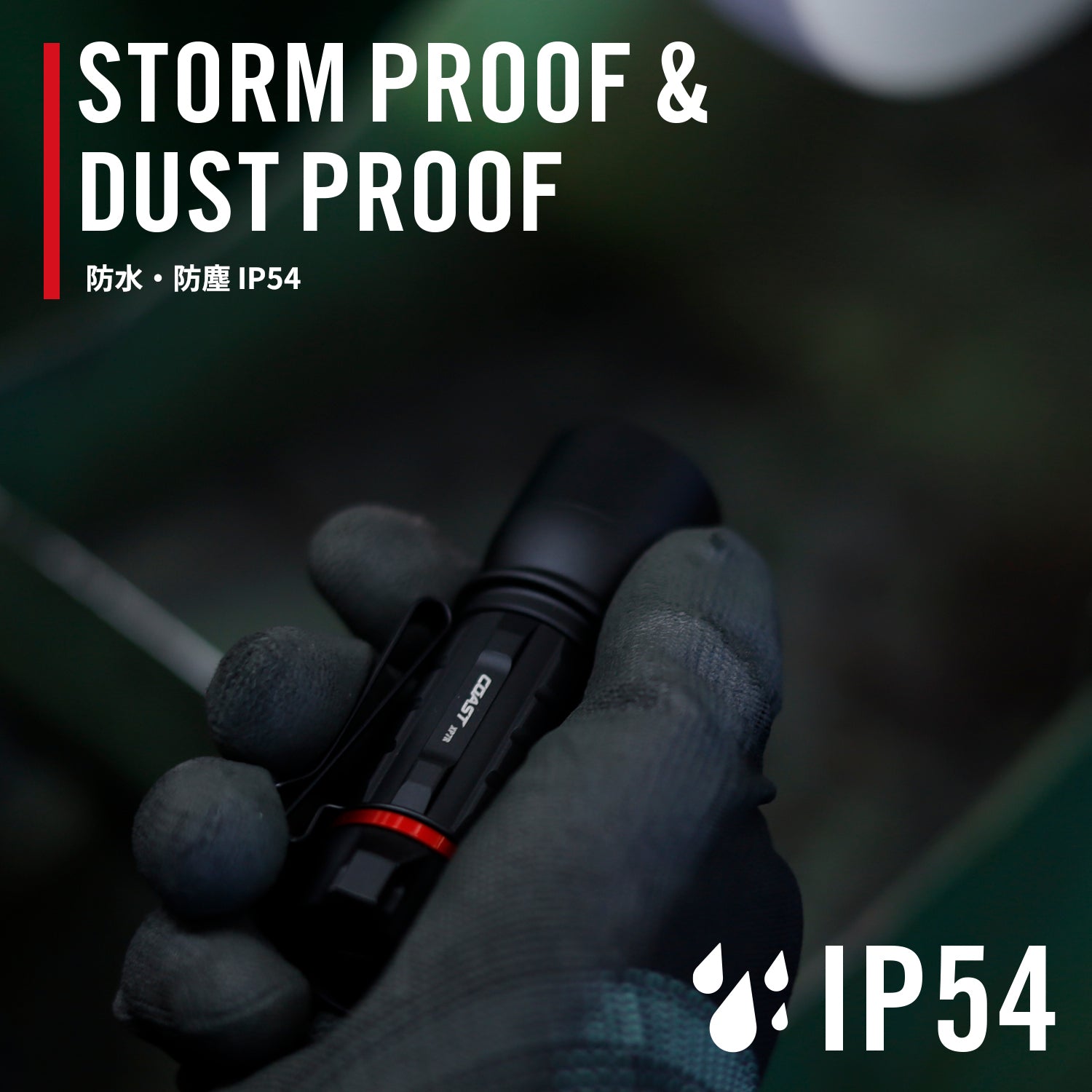IP54の防水・防塵基準を満たすために高品質な素材から構成され、COASTの生涯保証がついています。